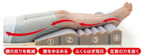 さらに膝や足首が突っ張らず、楽に足先を心臓より高い位置に保てるので、足先から腰までスッキリ軽々!この足上げマットを使えば、腰の反りを軽減する楽な脚上げ姿勢が自然とできます。